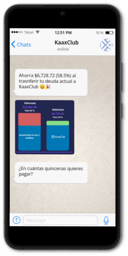 Inicia la solicitud a través de Whatsapp o la App.